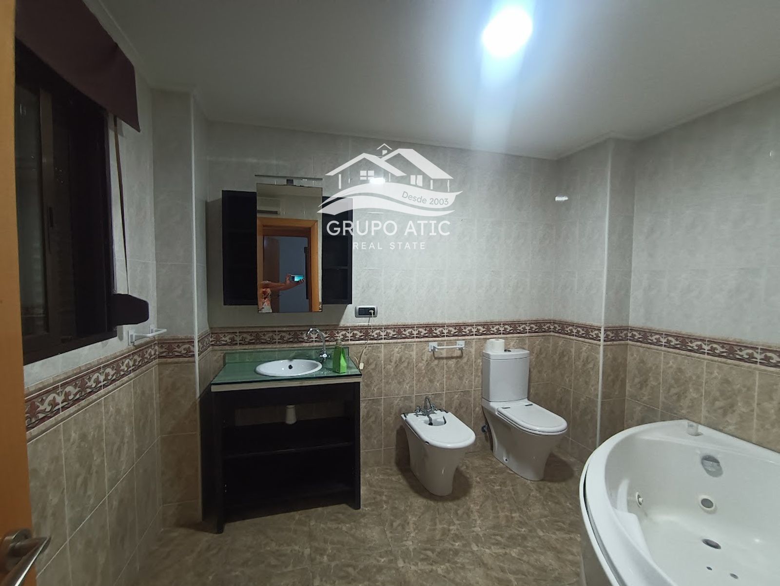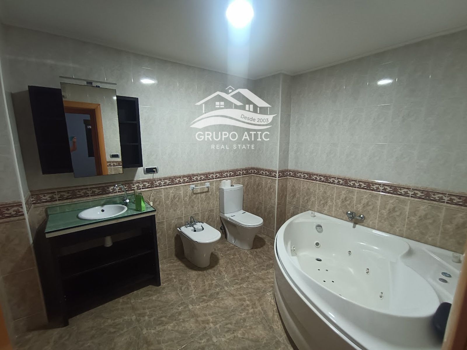 En la primera planta, el baño principal dispone de un jacuzzi, perfecto para relajarse y disfrutar de un momento de bienestar en casa.